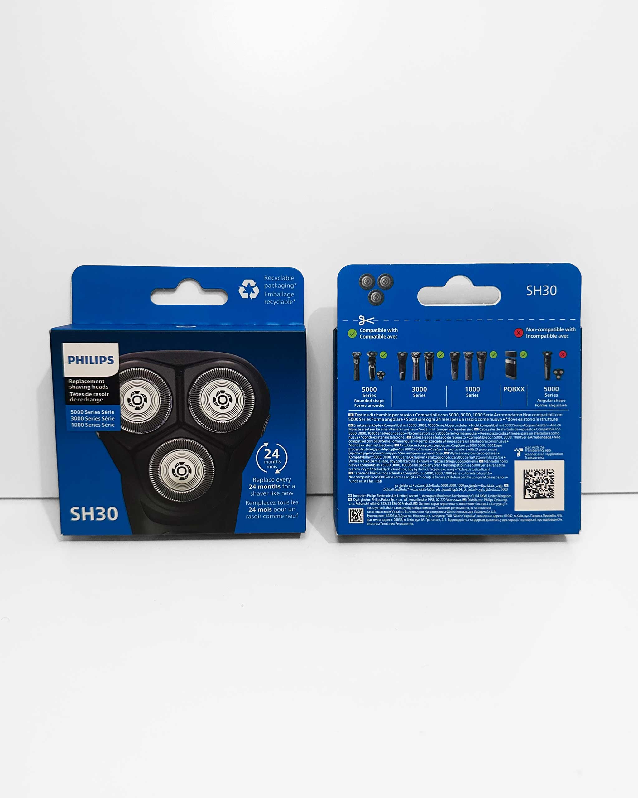 - Philips SH30-vaihtoterät ovat yhteensopivia Series 3000 ja 1000 -parranajokoneiden kanssa. (Katso tarkempi yhteensopivuus valmistajan tuotesivulta).